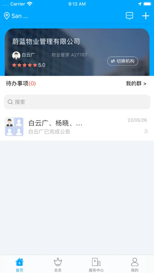【首页】是蓝卡医生与会员沟通的主要入口,可以使用1V1聊天和群聊天功能,支持在聊天中即时查阅与会员相关的健康数据。