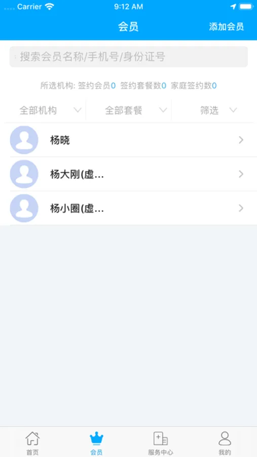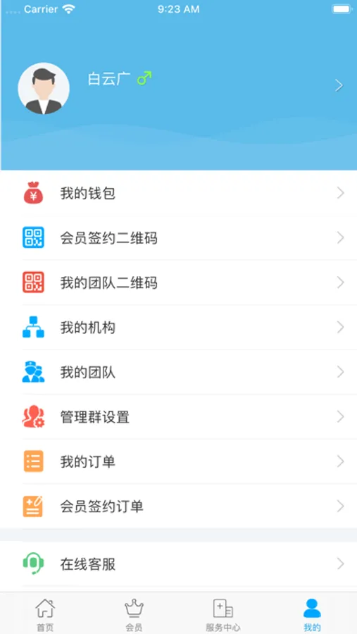【会员】是将蓝卡医生已签约服务的会员以通讯录的形式进行展示,方便医生同会员的即时沟通与服务。