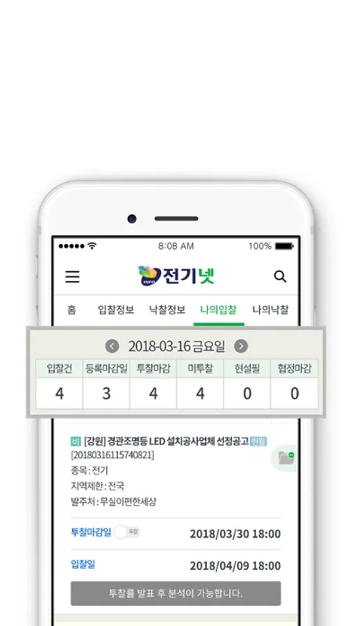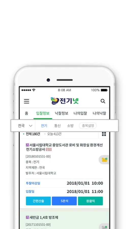 빠르고 편리해진 전기넷 앱으로 낙찰에 더 가까워지세요.