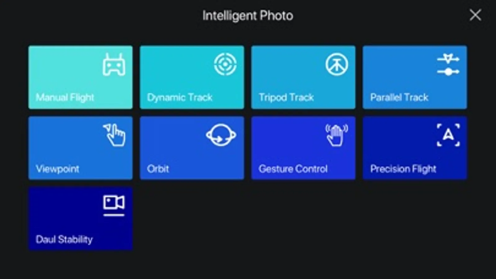 EVO II Series: In addition to the features available on EVO, Tripod Track, Parallel Track, Gesture Control, Precision Flight, and Dual Stability
