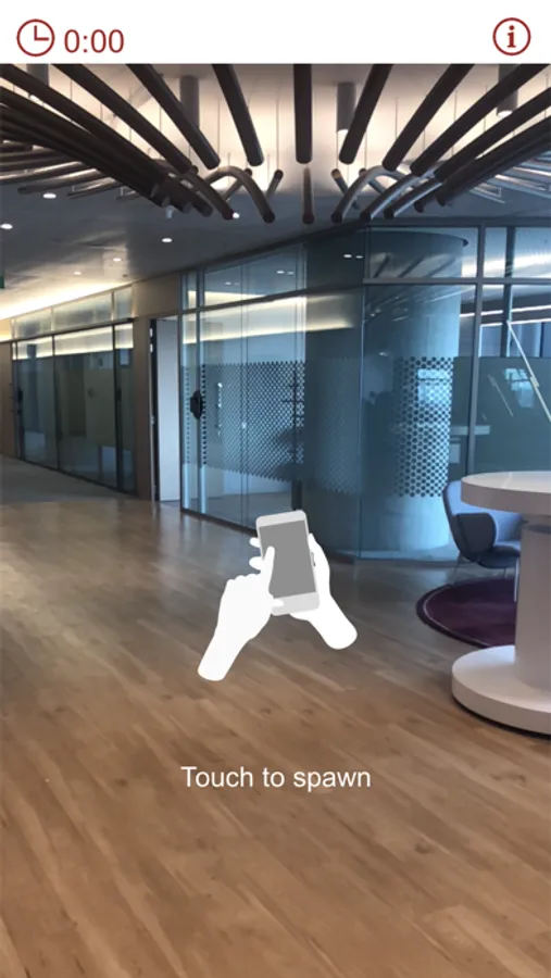 2. Move the mobile device (phone or tablet) side to side with the camera pointing towards the ground to find the flat surface. Once it finds the floor, it will say Touch to spawn.