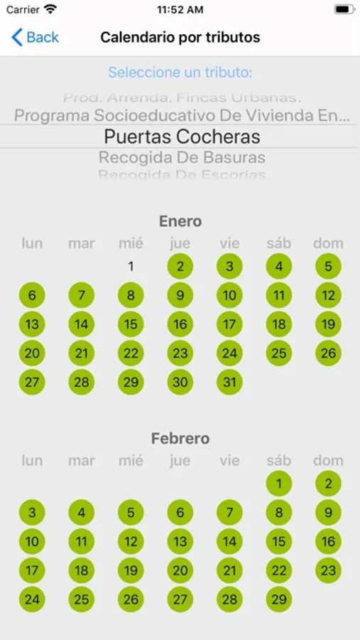 Por otra parte proporciona un calendario en el cual se puede consultar rápidamente los diferentes plazos para llevar a cabo los pagos de los tributos que se deben abonar en este organismo.