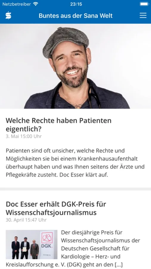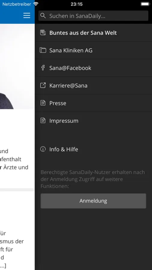 In der SanaDaily-App erhalten Sie die aktuellsten Unternehmensnachrichten der Sana Kliniken AG. Sie bietet individuell zugeschnittene Informationen: standortbezogene Nachrichtenkanäle, Veranstaltungsangebote und Team-Kommunikation.