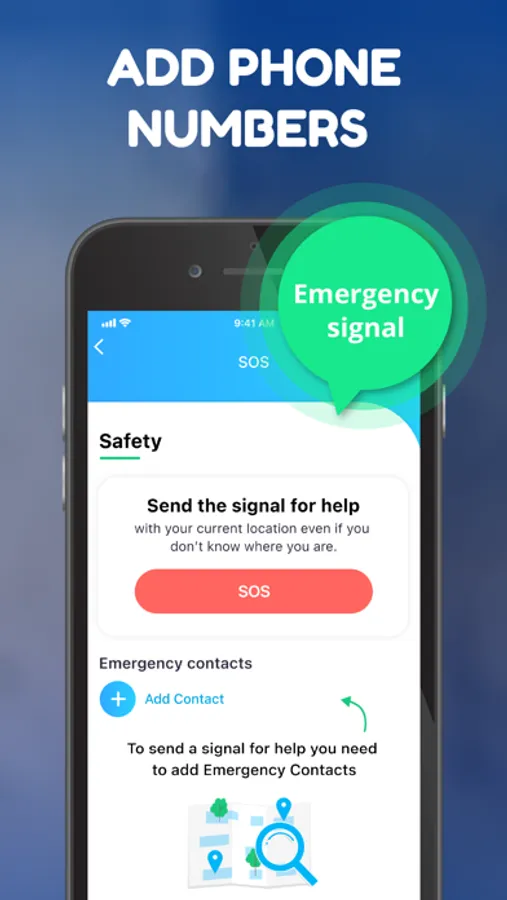- your relative will receive a signal for help and see a live update of your geolocation.
