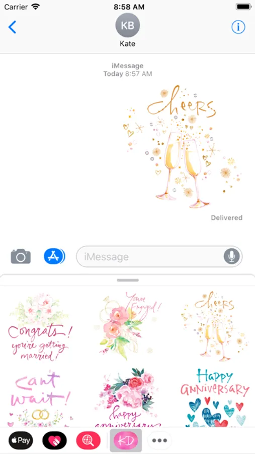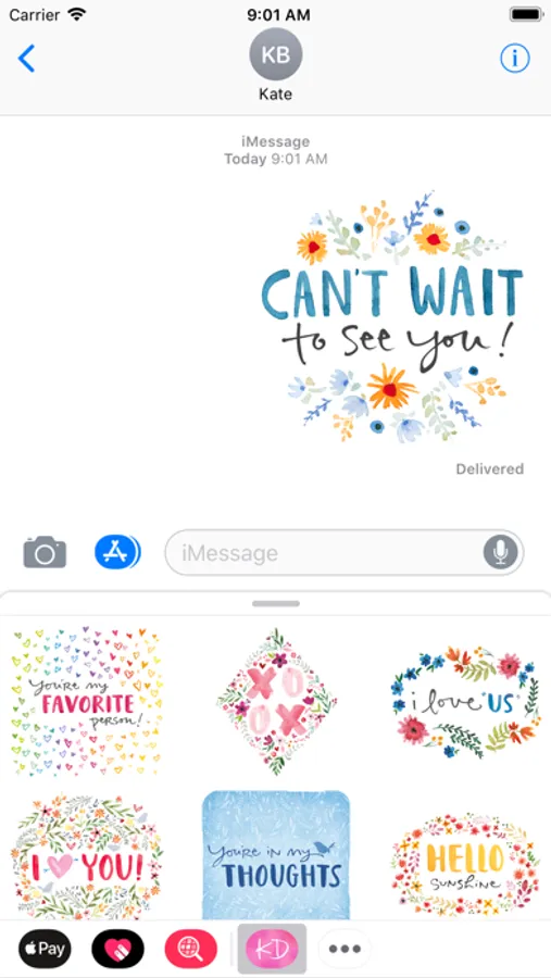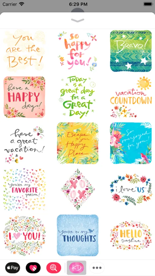 Designed with bright, heartwarming Kathy Davis® artwork and cheerful, inspiring, genuine words of joy, support and celebration, our sticker pack includes 100 digital stickers to send your most heartfelt sentiments to the ones you love. Share life's meaningful moments with your favorite people, one sticker at a time.