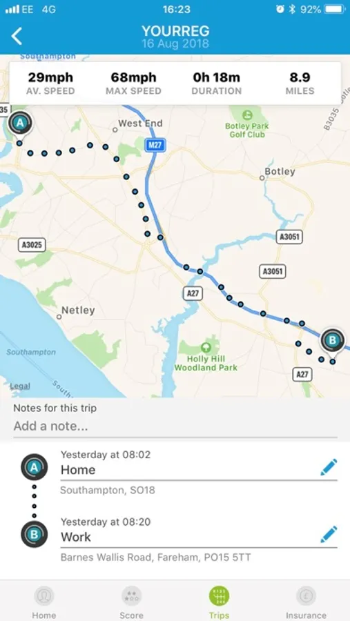 For customers with our windscreen Tag device, the app will allow you to record your driving whenever you're in your car.