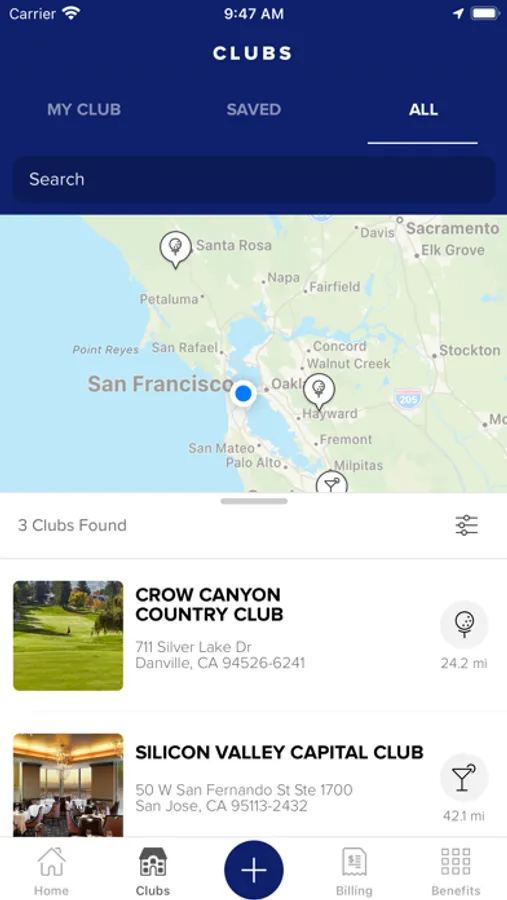 Guests can also view information and amenities available at Invited clubs, including hours of operation, driving directions, and contact information.