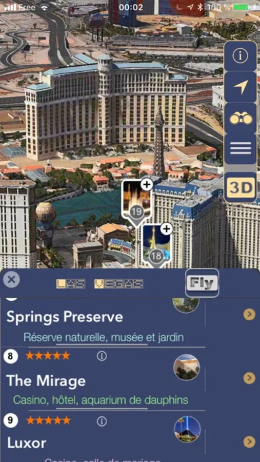 - Des survols automatiques (Flyover) vous permettent une visite complémentaire et judicieuse sur chaque lieu d'intérêt.