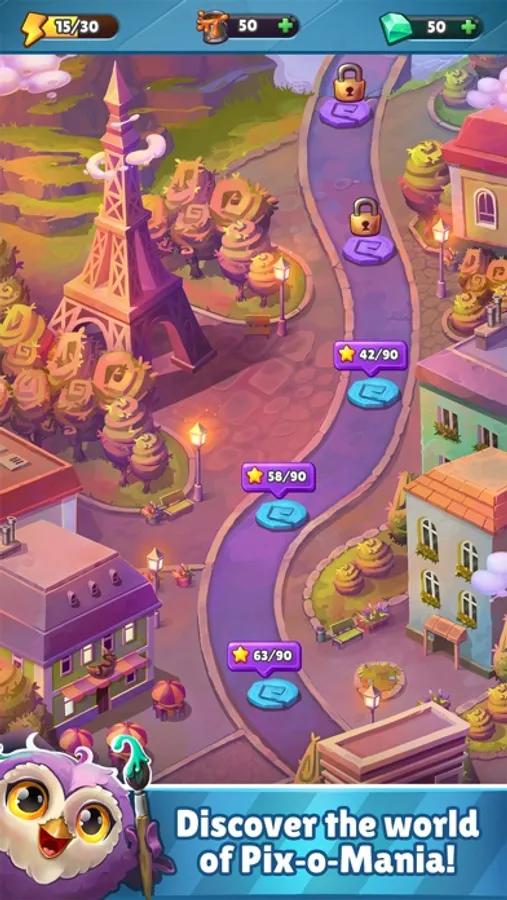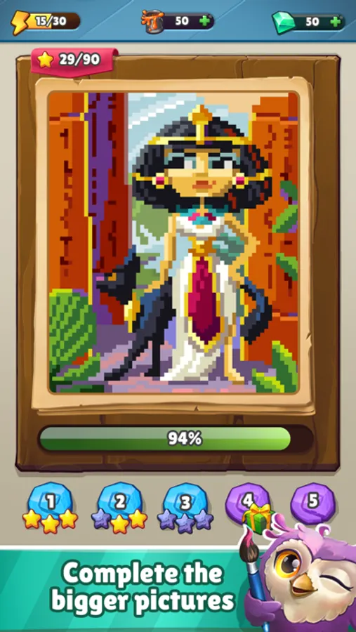 Join Anna-the-Owl in her picture-painting adventure through the exciting world of Pix-o-Mania! Solve pixel-art puzzles level after level to uncover the big pictures and watch them morph into beautiful hi-res masterpieces as you travel across exotic countries, scenes and landscapes.