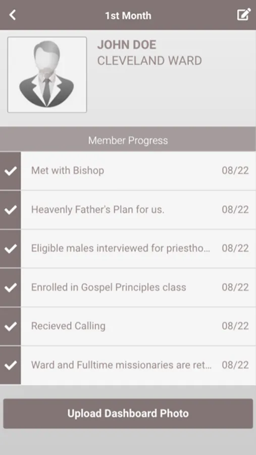 This application will track your progress during the process of becoming a new Mormon church member.