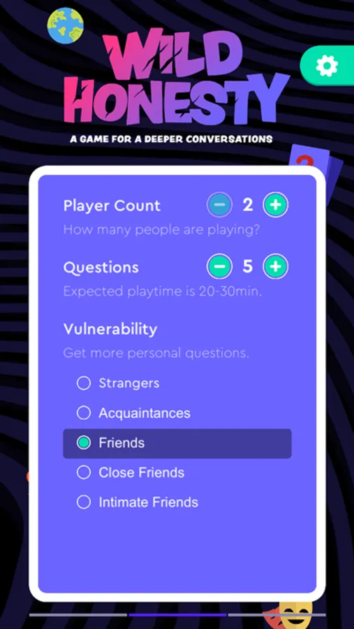 • Customize your gameplay around vulnerability. Personalize your game by choosing your friendship level for each round