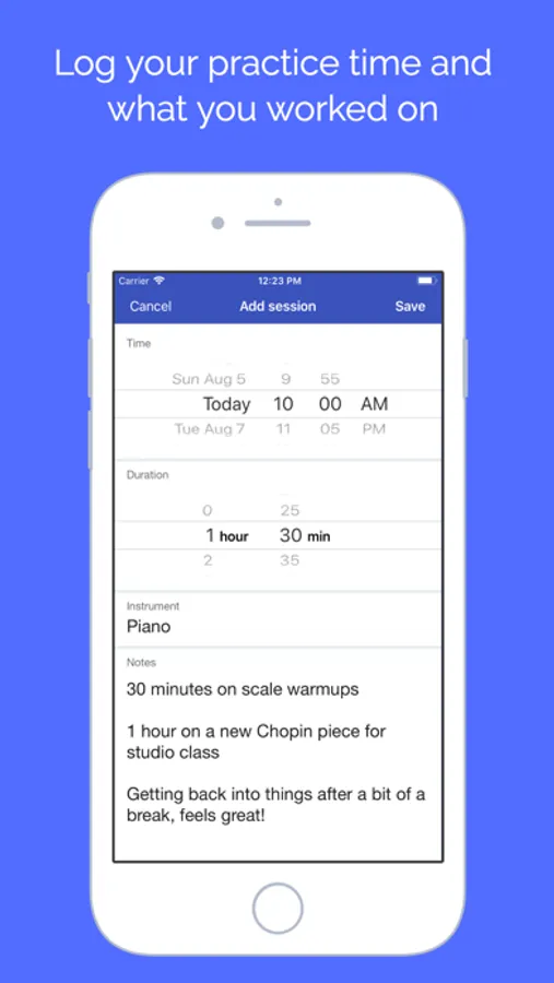 Log your practice sessions, track your practice time, and share with other musicians to stay motivated and accountable.