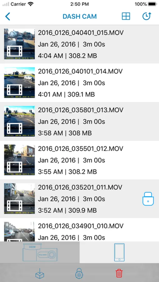 DriveGuard will allow Live View from the Dash Cam in addition to viewing video / photo files stored upon the camera and also downloading to your connected device for viewing later.