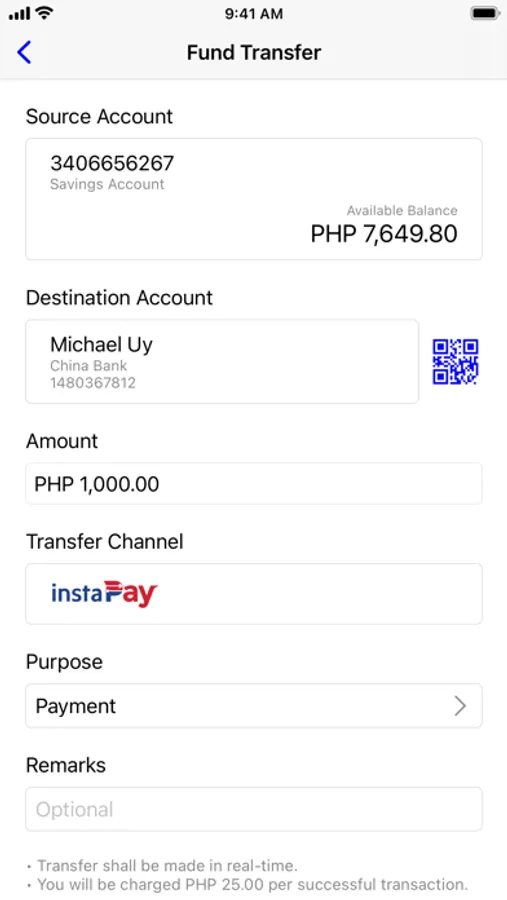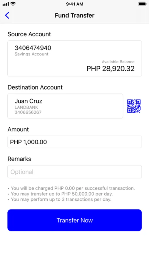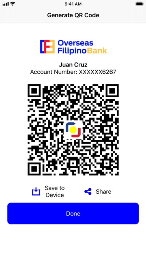 • Transfer funds to other OFBank and LANDBANK accounts, or to other banks via InstaPay. Use QR codes for quicker, more accurate transfers.