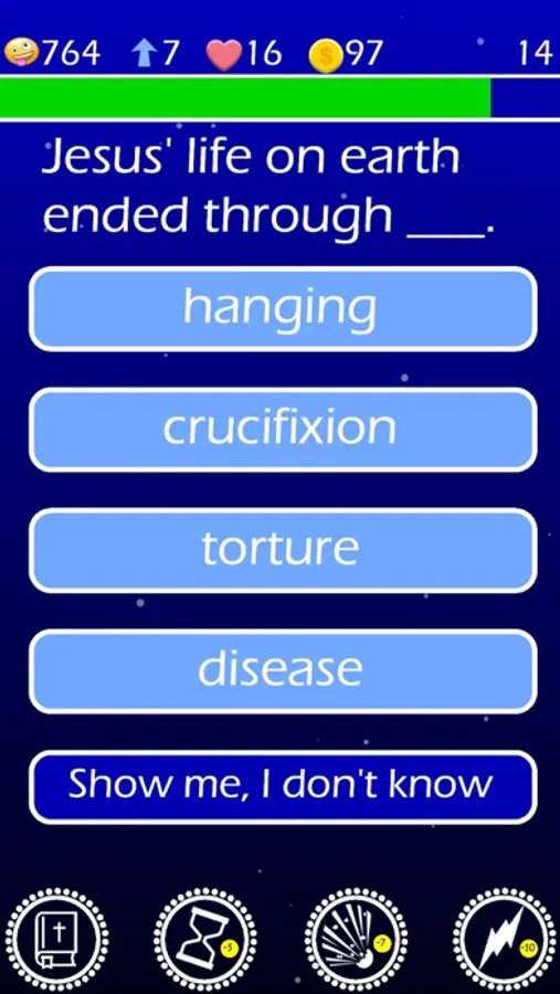 One of the highest-rated Bible Trivia Quiz Games. Don't know the answer? This game will show you scripture so that you can learn while having fun!