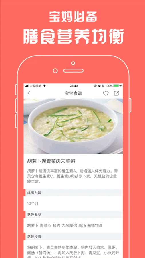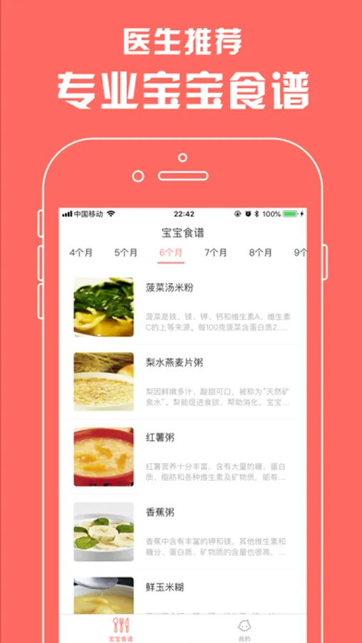 1. 根据宝宝不同时期,针对性的提供对应食谱。