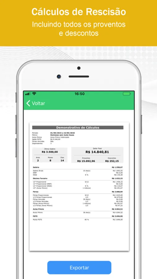 Calcule em poucos segundos seu saldo de salário, férias, aviso prévio e muito mais. Tudo de um modo muito simples e prático.