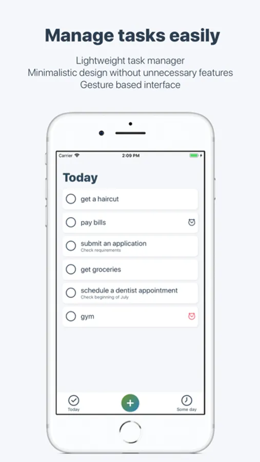 - Quickly add tasks to two main lists - Today and Some day