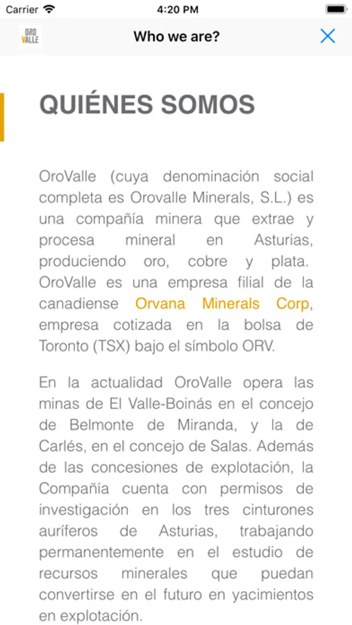 OroValle (cuya denominación social completa es Orovalle Minerals, S.L.) es una compañía minera que extrae y procesa mineral en Asturias, produciendo oro, cobre y plata. OroValle es una empresa filial de la canadiense Orvana Minerals Corp, empresa cotizada en la bolsa de Toronto (TSX) bajo el símbolo ORV.