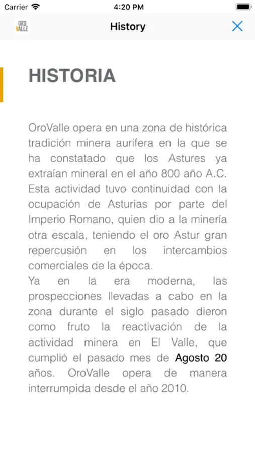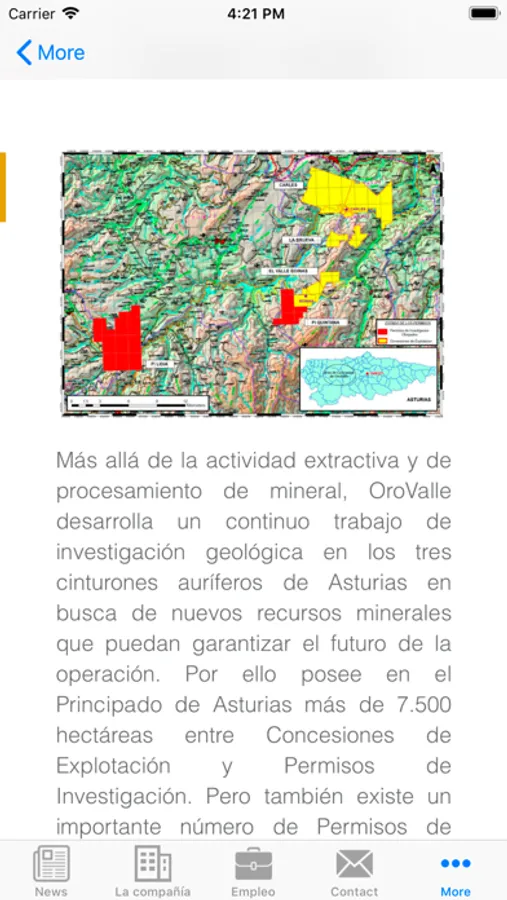 En la actualidad OroValle opera las minas de El Valle-Boinás en el concejo de Belmonte de Miranda, y la de Carlés, en el concejo de Salas. Además de las concesiones de explotación, la Compañía cuenta con permisos de investigación en los tres cinturones auríferos de Asturias, trabajando permanentemente en el estudio de recursos minerales que puedan convertirse en el futuro en yacimientos en explotación.