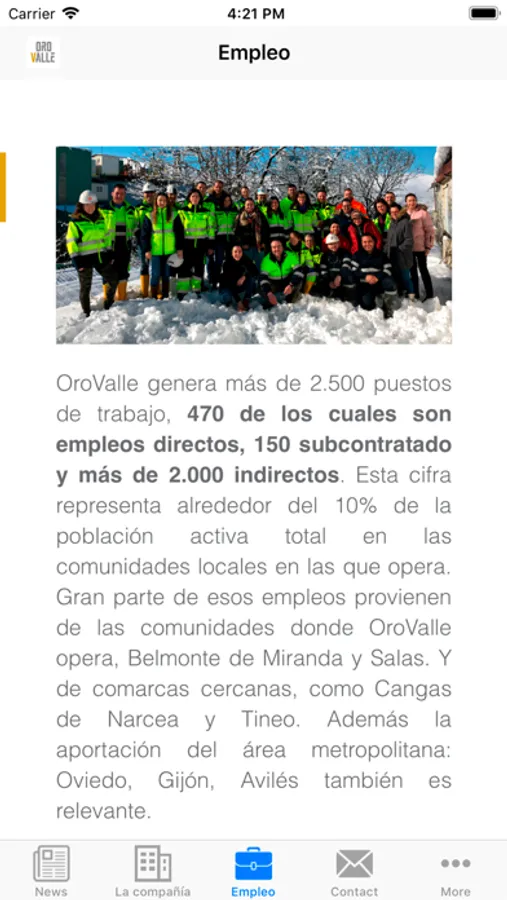 OroValle mantiene un fuerte compromiso con el desarrollo de su entorno, y por ello apuesta por el empleo local y por la generación de sinergias con proveedores locales.