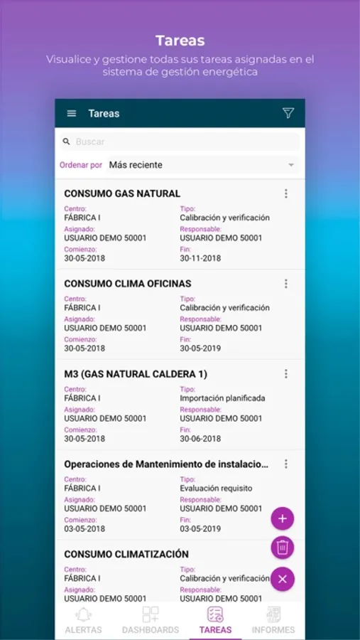 - Realizar el seguimiento de las tareas relacionadas con la gestión energética asignadas a los distintos responsables en sus sedes