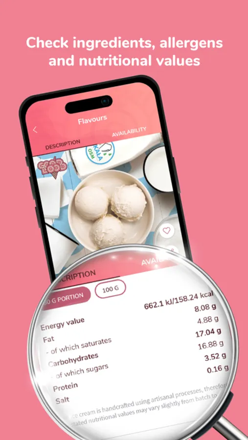 • ICY INFORMATION - with the app you can check the exact composition of all available flavours, their nutritional values and allergens.