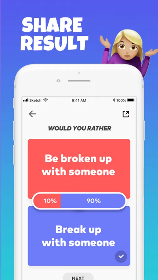 All the questions are in the same template "Would you rather do A or do B?", and you have to make a hard choice to choose from A and B. It is super funny and interesting when you see the result that how other people make the choice.