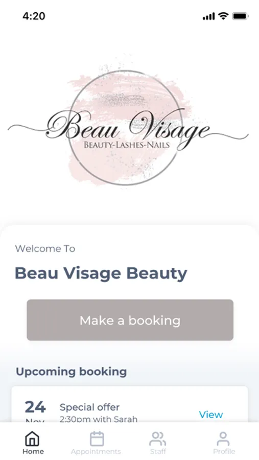 The Beau Visage Beauty app makes booking your appointments and managing your loyalty points even easier. You're just a few taps away from feeling good and looking great!