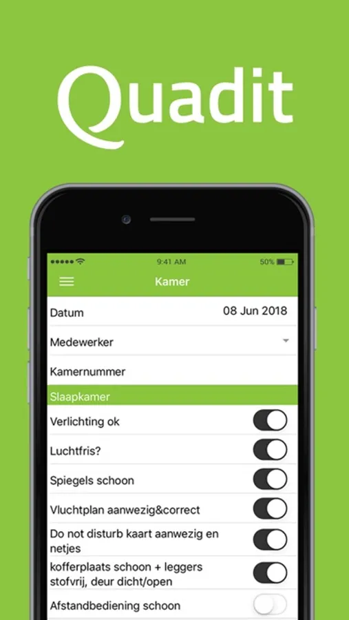 Quadit is vooraf gevuld met vragen en scores, die u naar uw eigen maatstaven kunt aanpassen. Hecht u meer waarde aan een bepaald onderdeel, of heeft uw kamer bepaalde faciliteiten niet? Dan wijzigt u eenvoudig uw vragenlijst of scores. Wenst u andere afdelingen te controleren: maak een extra vragenlijst aan en zet deze bij uw kwaliteitsmetingen!