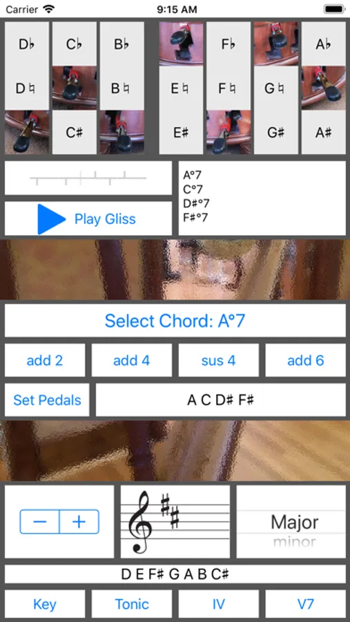 For pedal harpists: This app provides a quick and easy way to find the various pedal settings for commonly used glissandos in any key. Additionally, it will find pedal positions that produce a gliss for common chords (when possible).