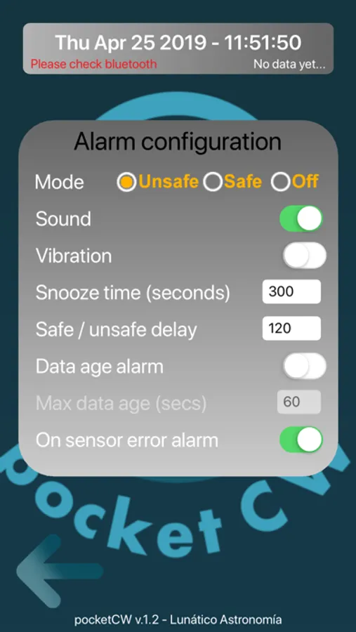 Watchdog function - alarm will fire if your iPhone or iPad stops receiving data.