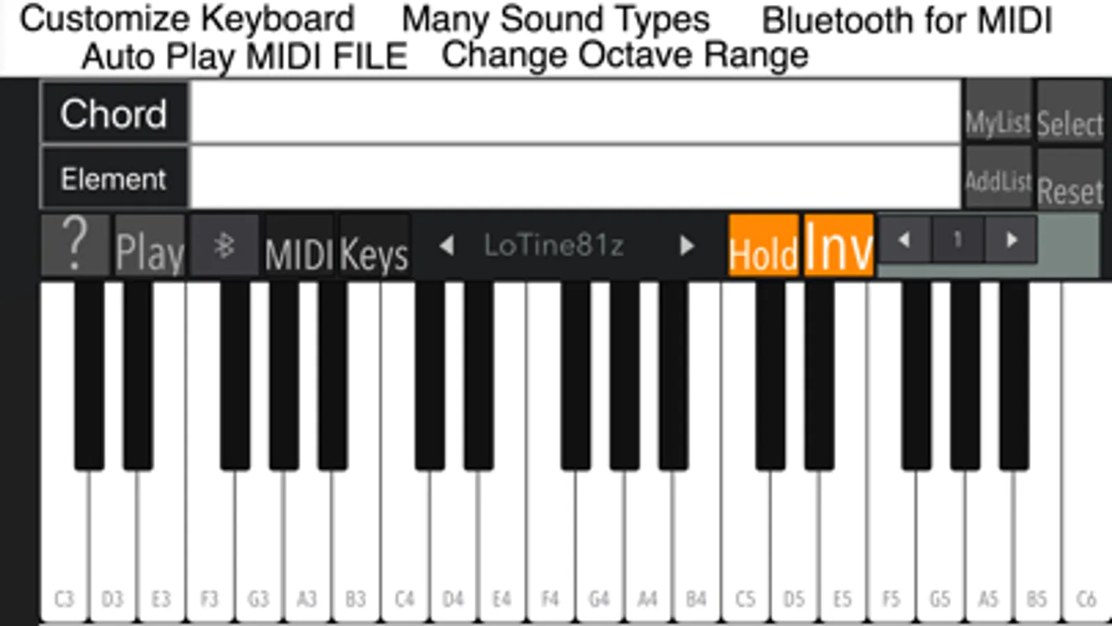 · The keyboard can display up to 1 to 3 octaves.