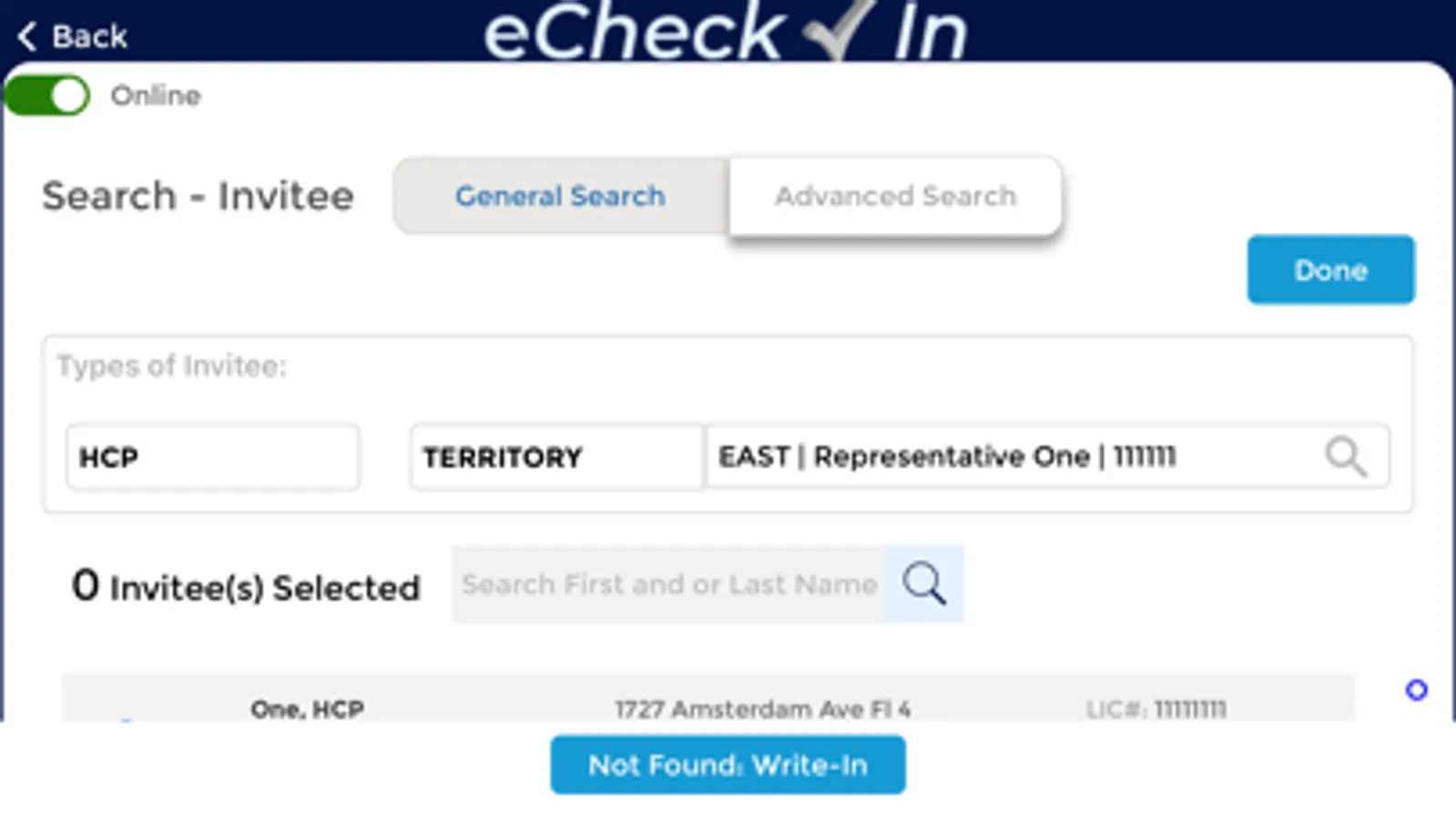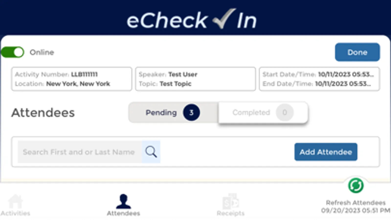 2. Attendee search, signature capture and write-in capabilities