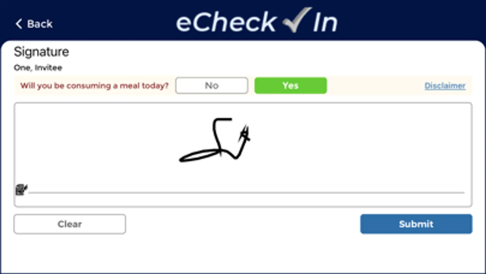 Electronic sign in app designed to capture attendee signatures at programs/activities.