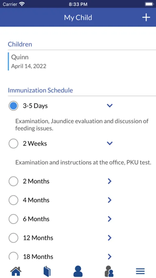 Mark off each visit and immunization as it happens. This quick, at-a-glance feature will help you recall if your baby is due for an immunization without you needing to call, request records, or log into your patient portal.