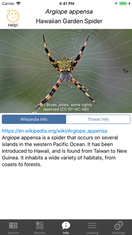 The application also provides general information on the classified spider (along with all spiders in the SpiderAI database) including a picture, Wikipedia description, and potential threat information. Material presented on the application is for entertainment value and should not be construed as usable for medical advice (regarding bites, etc.). Please consult licensed professionals for such information.