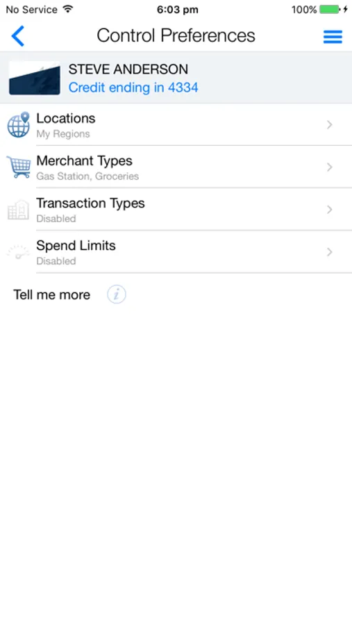 Define a geographic region where your cards can be used or use My Location to ensure your card is only being used when it’s with you.