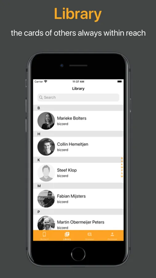 - Library: all the digital business cards you’ve received always within reach, updating automatically.