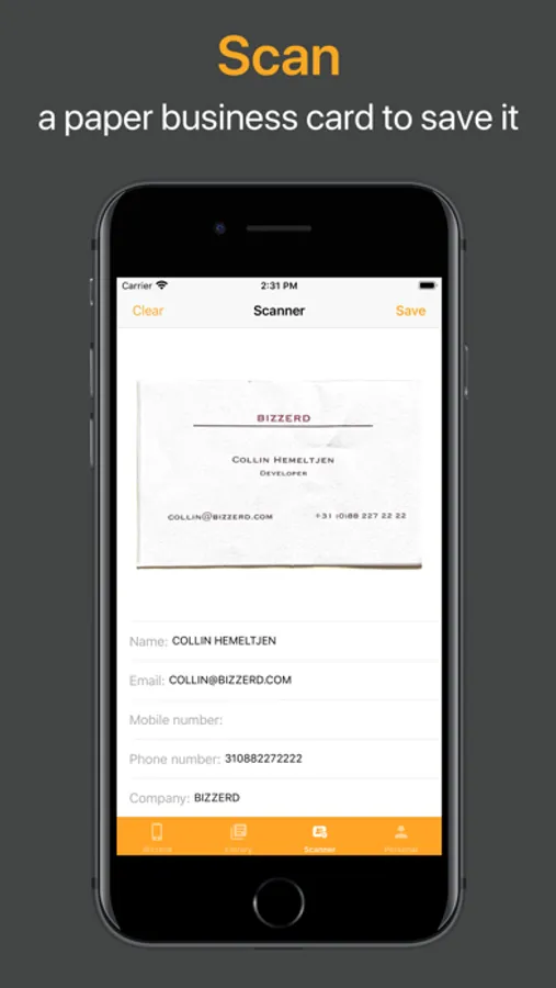 Someone gave you a paper business card? Scan their card to add it to your library and send your digital business card in return via e-mail, all in just one click.