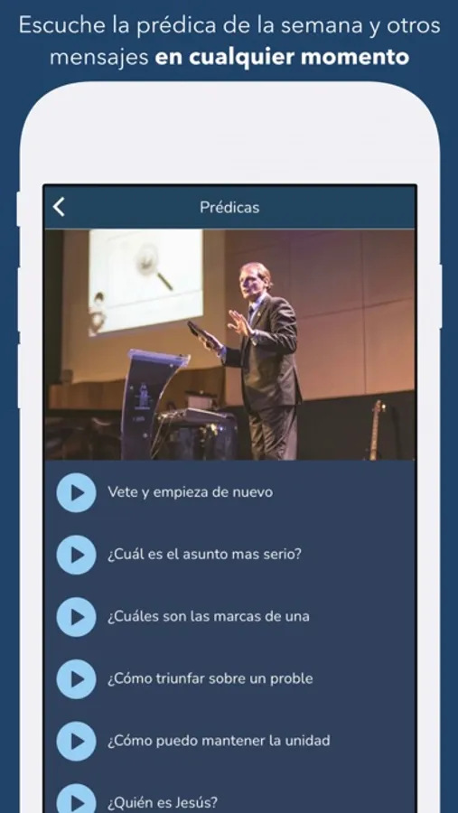 Esta aplicación le permitirá escuchar la prédica del domingo anterior, así como un archivo de prédicas anteriores para que pueda oírlas nuevamente en cualquier momento que desee.
