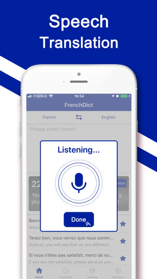 "FrenchDict" professional French translation app, moral translation, efficient photo translation, intelligent voice translation, instant dialogue translation, relying on artificial intelligence black technology, French travel and French learning are necessary!