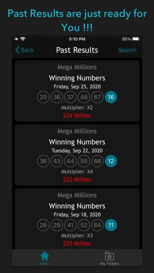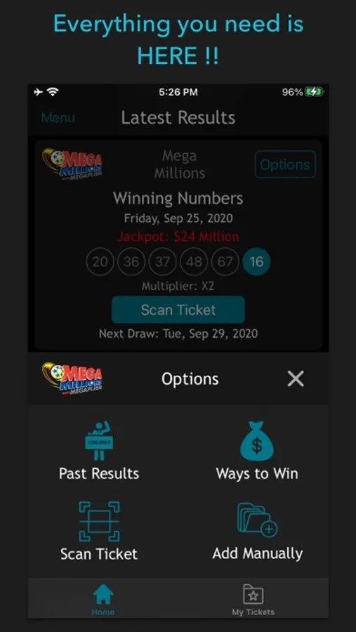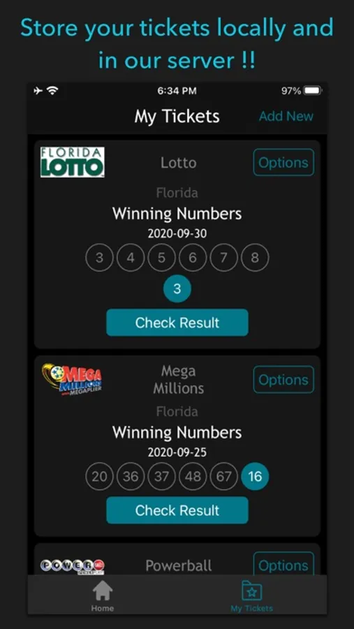 The latest jackpot winning numbers are loaded with history (Past results) for each game, prize levels/payouts (Ways to Win) and you can also scan physical ticket information for games. The scanning and detection of lottery information albeit works correctly, the user has full independence in reviewing and modifying the numbers before checking results against or storing away in phone storage.