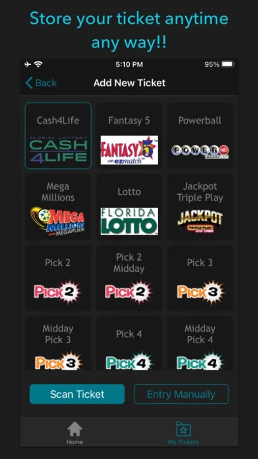 - Fully REVIEW & modify scanned lottery before you STORE or check result.