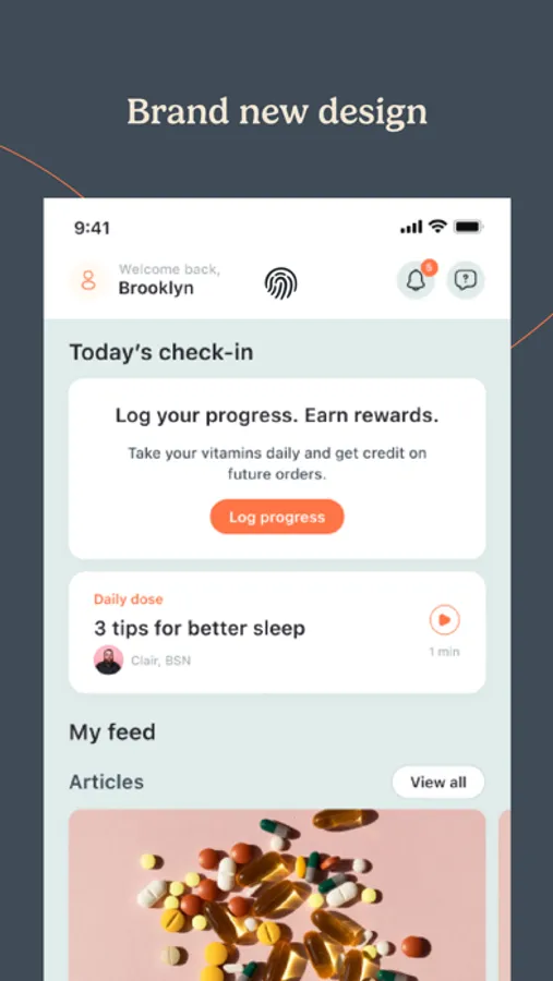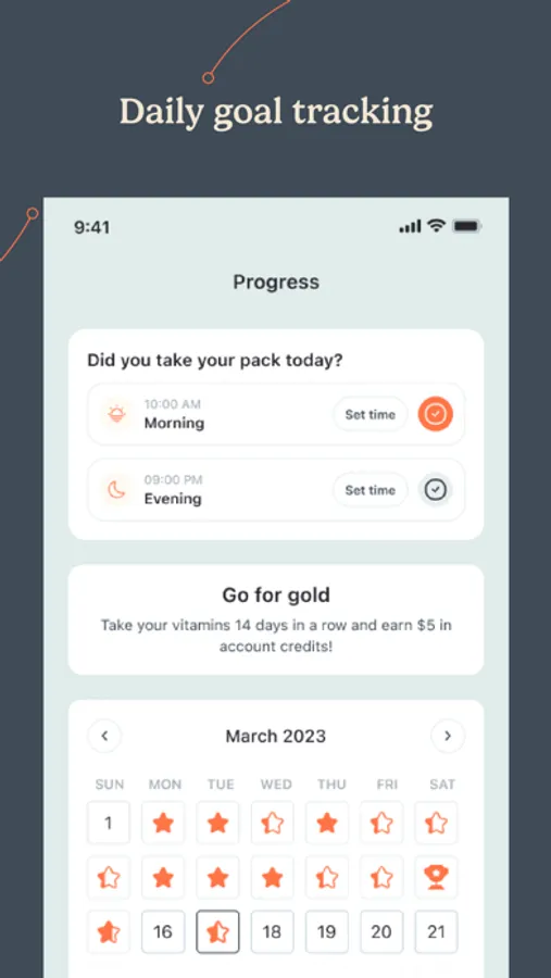 - Daily goal tracking: Check-ins, cheerleading and rewards to keep your vitamin plan on track.