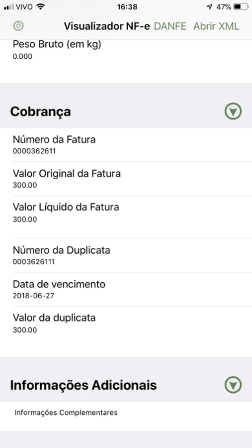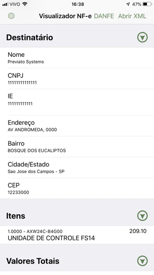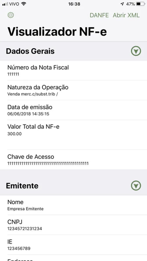 - Visualização dos dados da Nota Fiscal Eletrônica;
