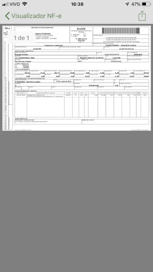 - Opção para compartilhar a DANFE/DANFCe ou salvar em outro local;