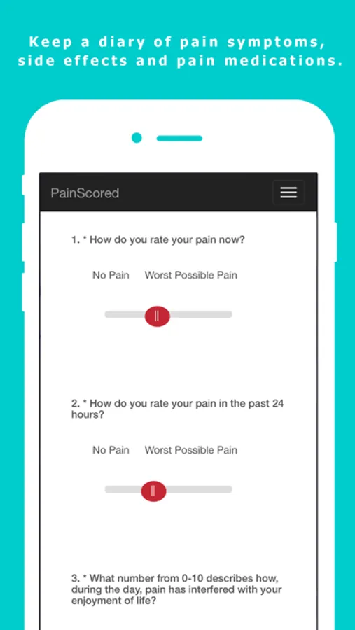 Pain Scored is an easy daily log for anyone to report and track symptoms, improvements, and problems. Using a simple interface, this dynamic tool uses a variety of tools to help you measure pain, symptoms and side effects. Most important, reports are simple and easy to understand. Behind them, however, is a powerful tool which puts the data together. The goal is not zero pain- its improved quality of life. With Pain Scored (tm), your story is documented for you in a better way than before.