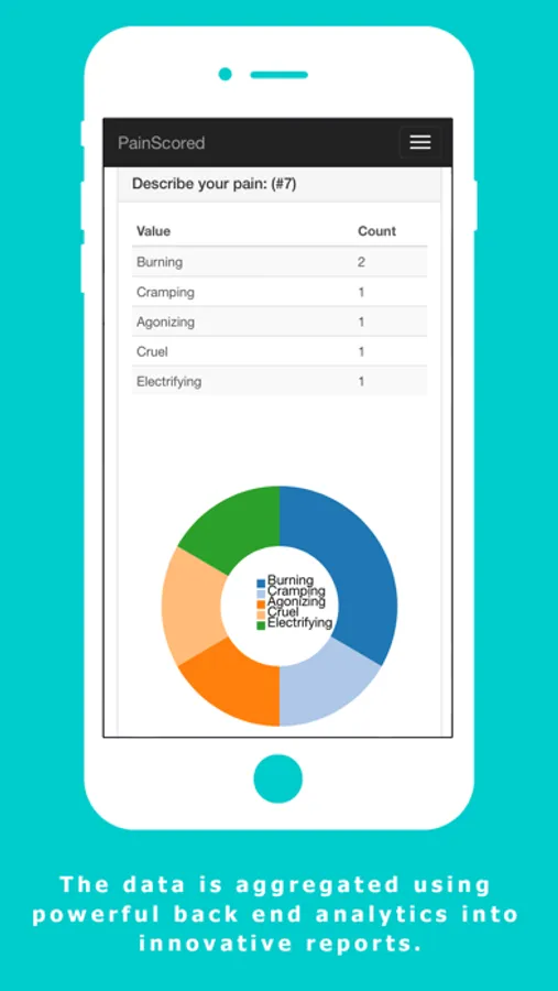 The data provided is aggregated using powerful back end analytics into innovative reports. These reports are used to monitor the compliance, efficacy and benefit of pain management therapy. There is also secure messaging provided to communicate with patients!