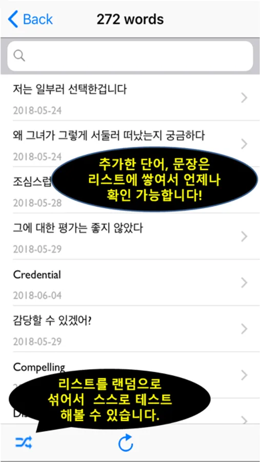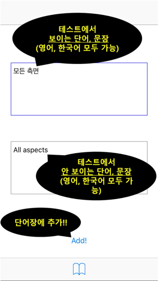 만든 단어장은 손쉽게 암기 테스트를 할 수 있도록 디자인 하였습니다.